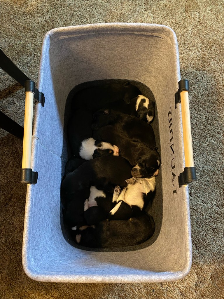 Whew! I am so glad the first half of this post was somehow saved! I finished it and was ready to post it after attaching a picture but my laptop was lagging and I lost the post. Anyhow, I forget most of what I had wrapped up this post with. It was something do with the grey bleakness of winter. It lasts so many months and the lack of sunshine and warmth is depressing. It helps a little to have a basket full of puppies for cheer. When I wrote and was going to post this they could better fit in the basket, it might be too squishy for them now. They were only in it temporarily while I cleaned their area.